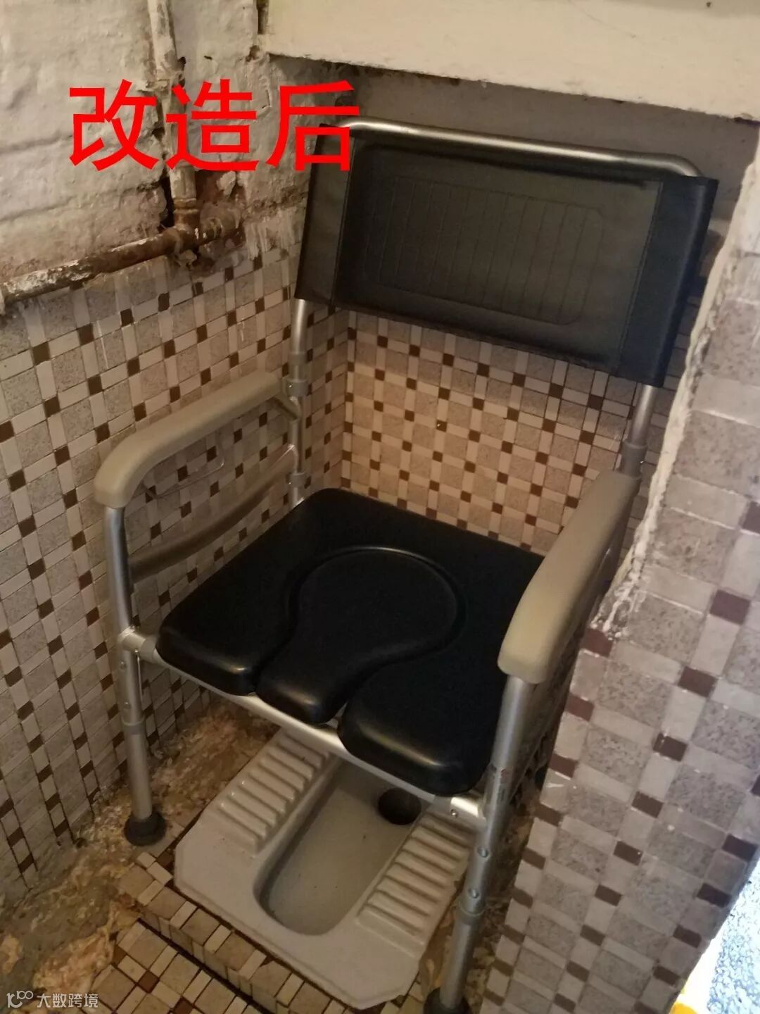 ➡改造后:为罗婆婆在厨房和洗手间外都安装了扶手;考虑到罗婆婆家中的洗手间比较狭窄,不适合安装扶手,最后为罗婆婆安置了坐便椅。日后罗婆婆再也不怕摔倒啦。