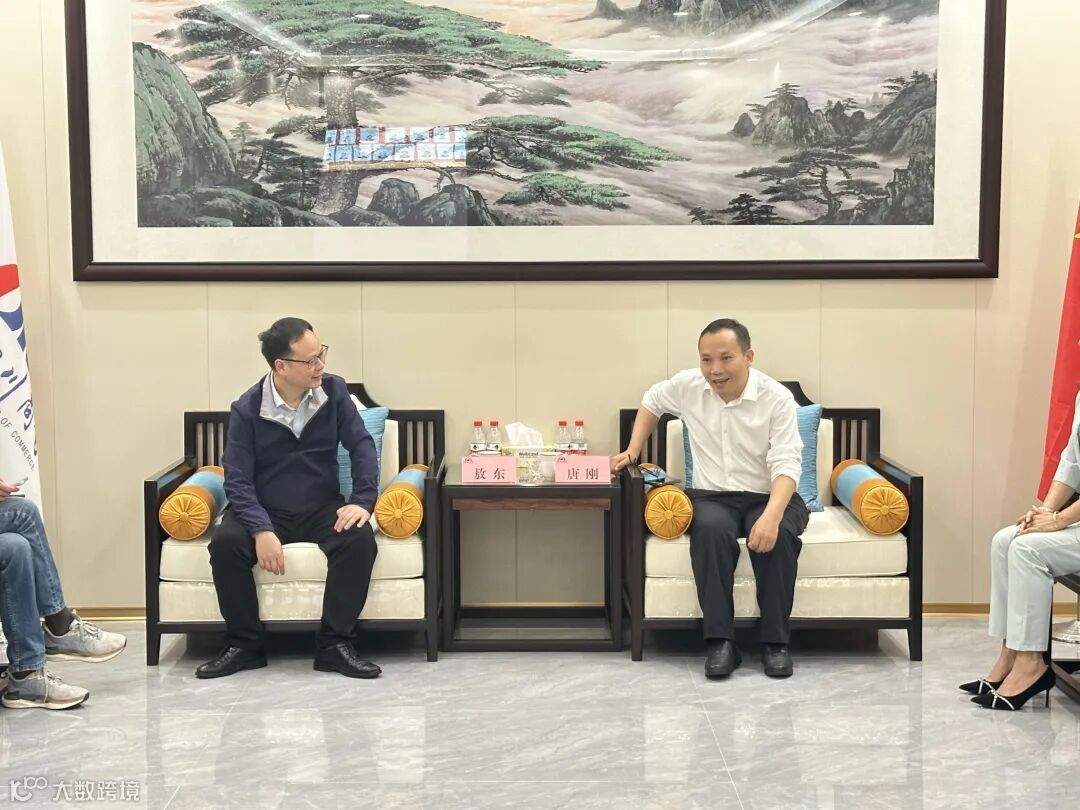 2025年4月9日上午,宜宾市以工代赈办主任敖东、副主任袁刚及宜宾发展集团汇海数智产融公司运营总监张旭一行莅临商会考察,我会执行会长唐刚、执行秘书长张燕热情接待,双方围绕宜宾文旅产业高质量发展、数字经济赋能乡村振兴等议题展开深入探讨,共绘川粤协作新蓝图。