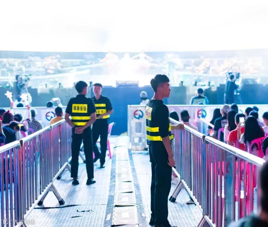 为顺利做好演唱会的安保工作,4月15日当天早上8点,广东银泰项目组工作人员一早来到现场进行安保的布置工作。水码、安检设备等专业器材在工作人员指挥有道下筑起了有形的防护,确保演唱会当天晚上所有区域的百分百的安全。