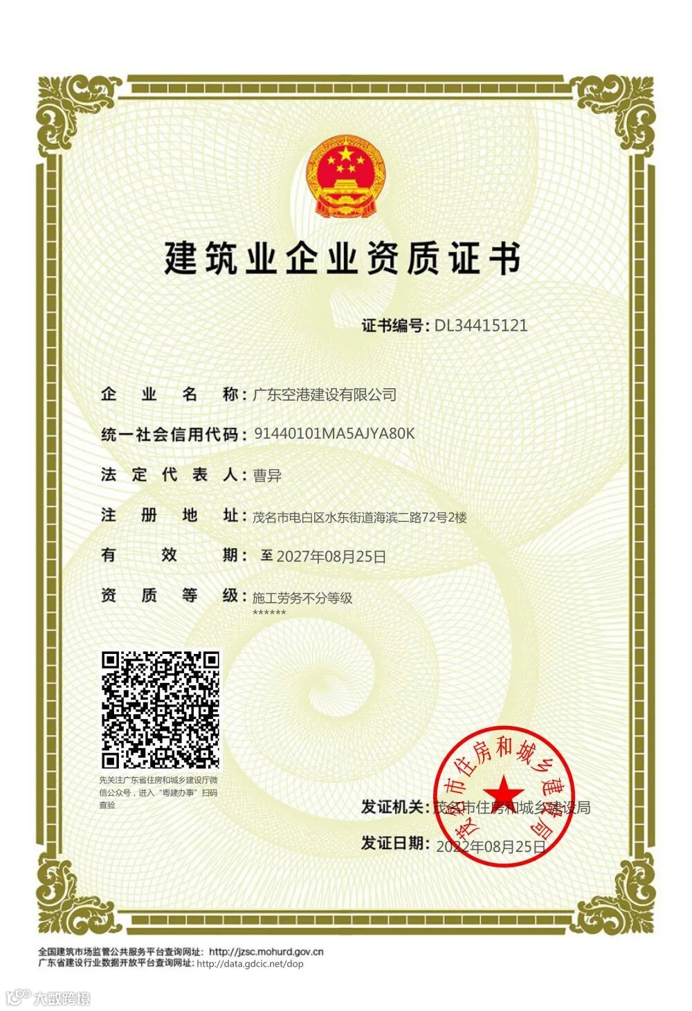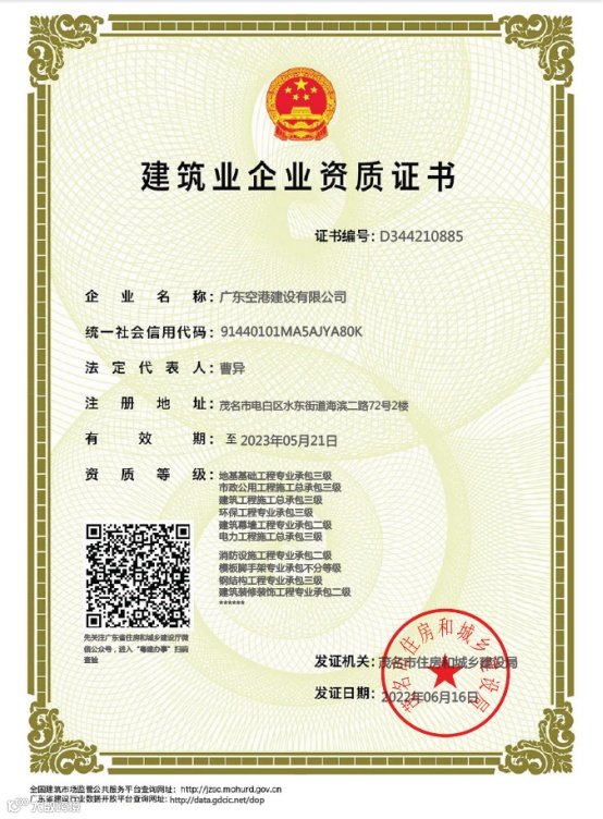 广东空港建设有限公司 注册资金壹亿零壹佰万元。(统一社会信用代码:91440101MA5AJYA80K)于2017年09月29日正式成立,目前我司拥有多个资质,建筑机电安装工程专业承包一级,电力工程施工总承包、建筑工程施工总承包、市政公用工程施工总承包三级,钢结构工程、地基基础工程、环保工程专业承包三级、建筑幕墙工程、建筑装修装饰工程、消防设施工程专业承包二级、模板脚手架专业承包、劳务施工、承装(修、试)五级。专门为各行各业提供专业的建筑工程承包服务。自成立以来,公司迅速组建了一支专业化、规范化的团队。我司现有管理职员上百人。公司始终贯彻“质量第一,服务至上”的质量方针,执行“过程与结果双满意”的工作宗旨,自觉做到重合同、守信用,把企业效益和社会效益结合起来,并使之逐年提高。