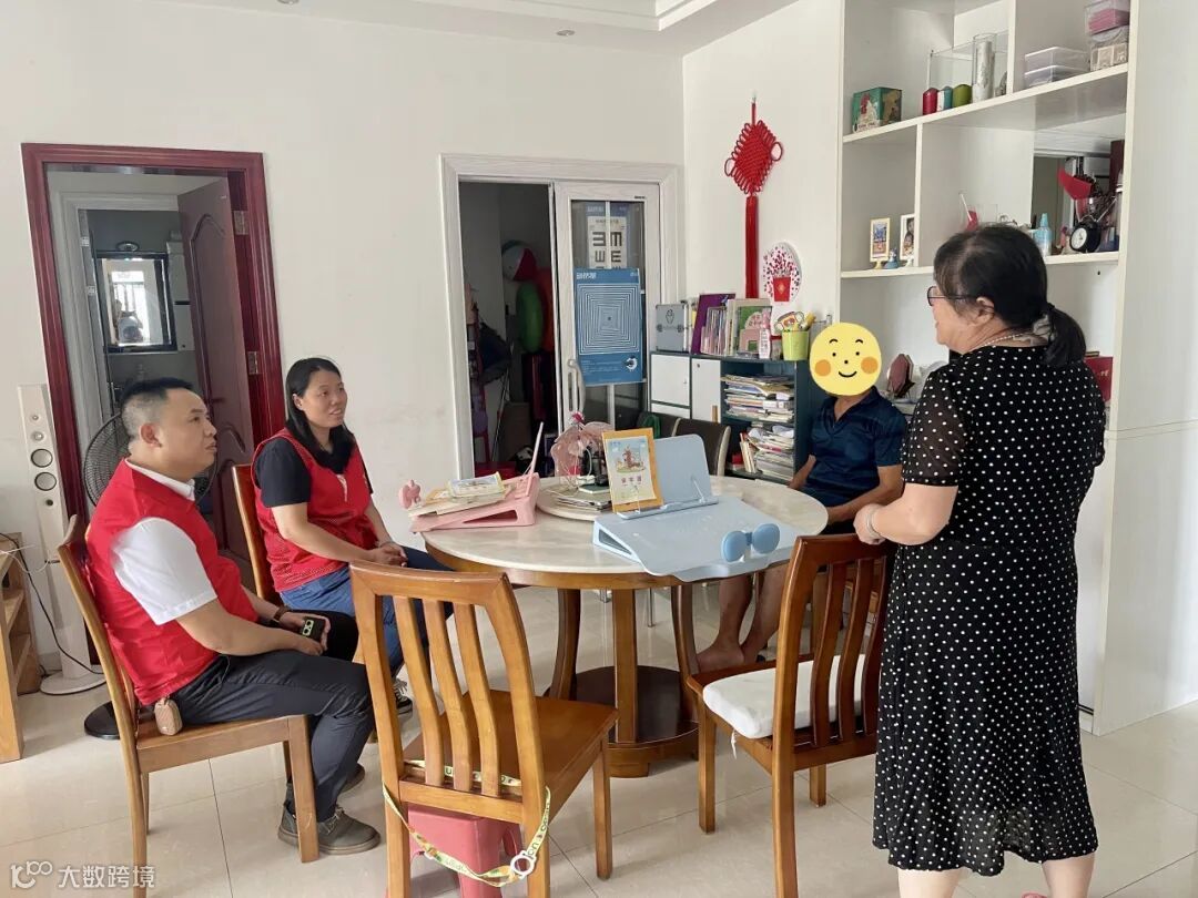 活动当天,银泰服务志愿者服务队与同德社区工作人员一起,分成两个小组,入户探访辖区内的5名残障人士。