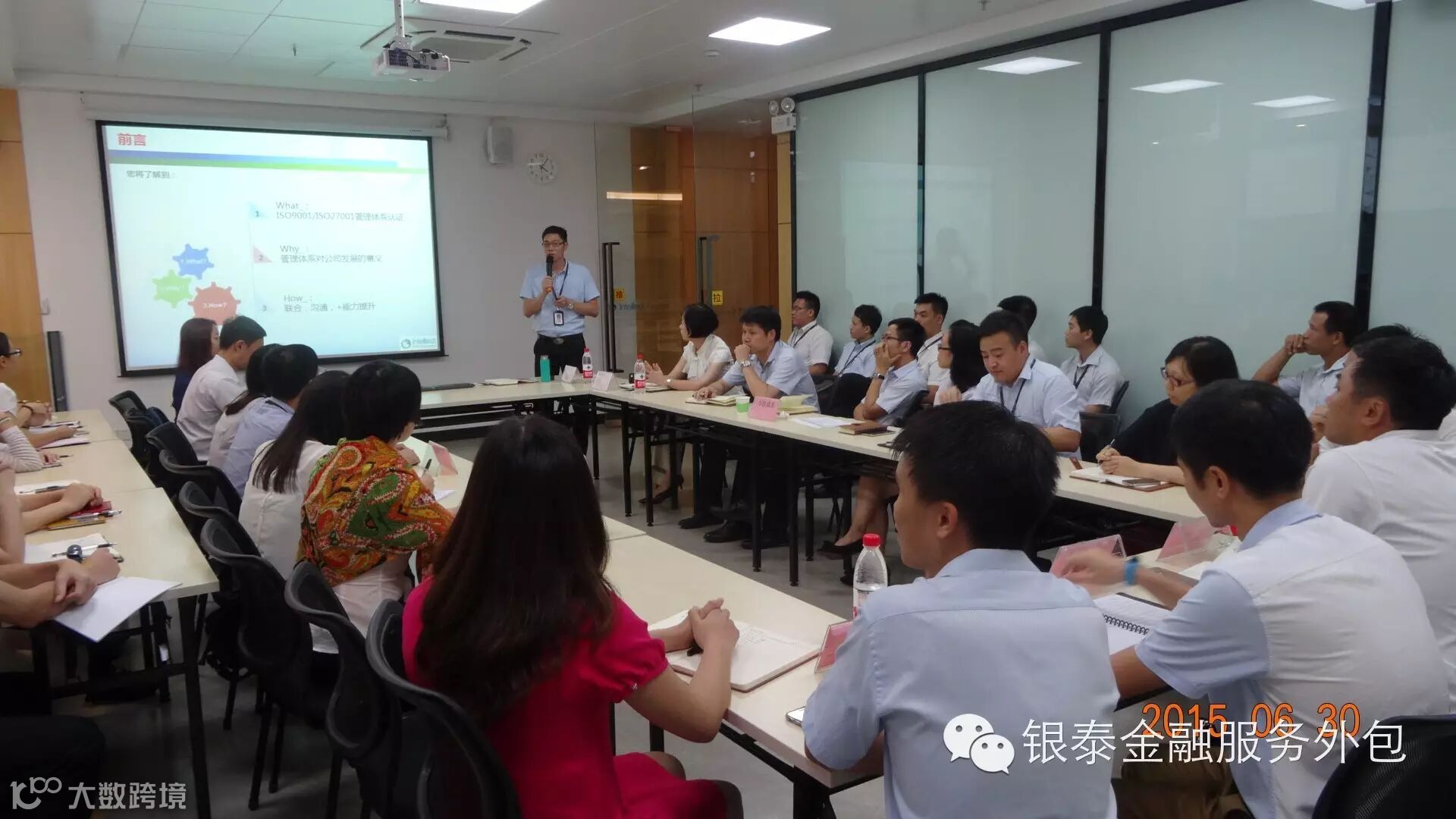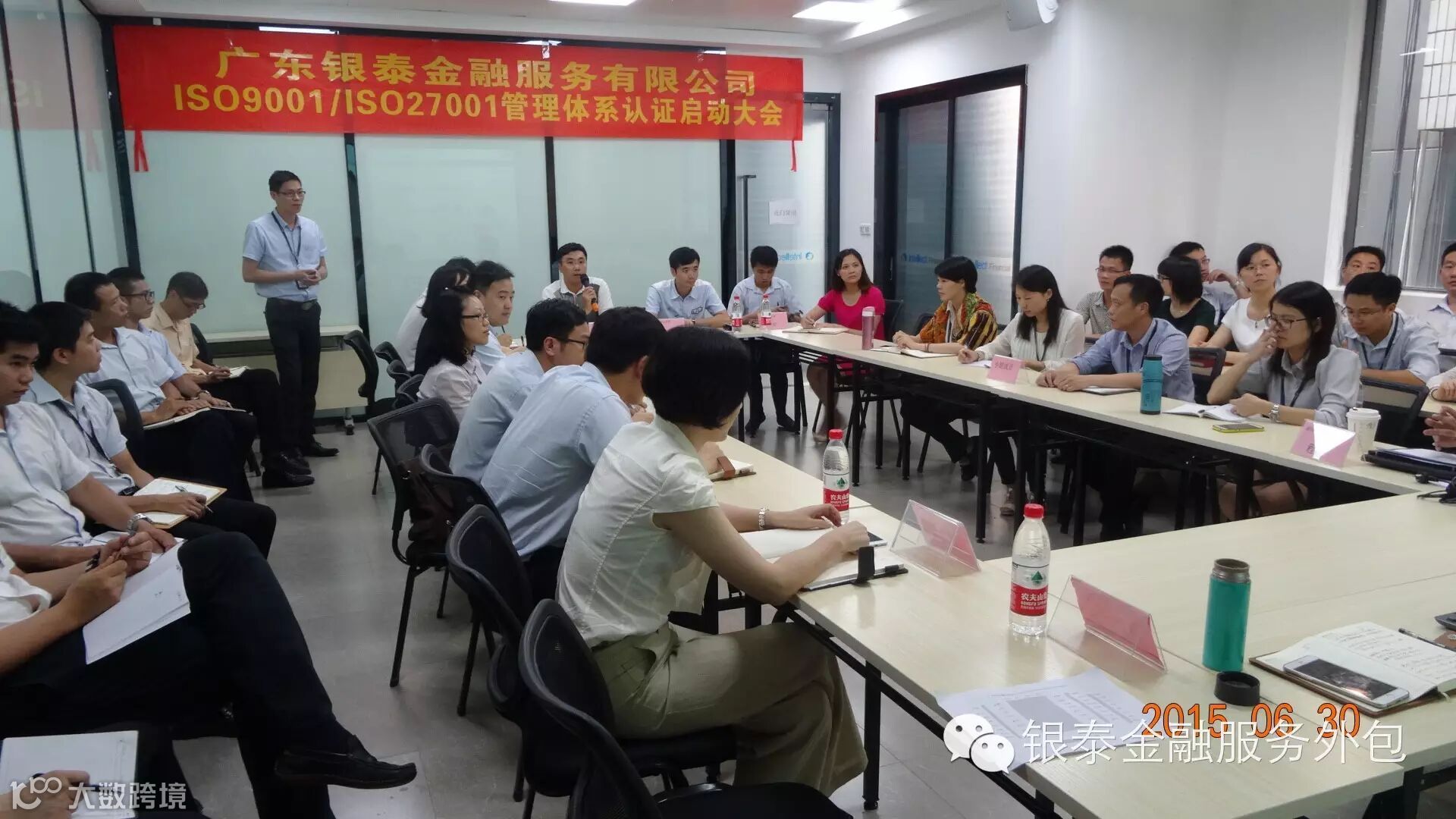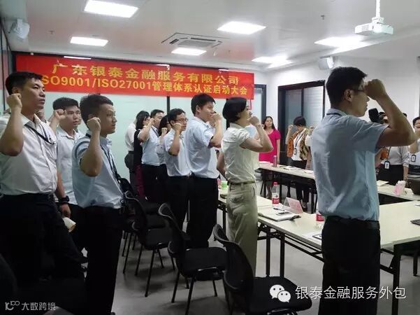 为贯彻“聚人才·建系统·促科研”经营管理方针,建立一整套标准化、规范化的管理体系,6月30号下午,广东银泰金融服务有限公司召开ISO9001&27001管理体系认证启动大会并取得圆满成功,银泰董事长杨冉、董事总经理彭原、董事常务副总经理曾芸、董事副总经理杨立等领导、集团代表、机关人员共同参与会议。