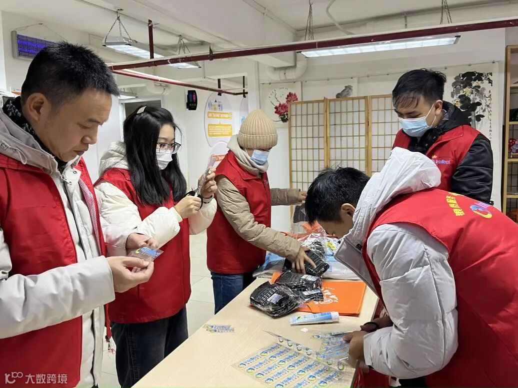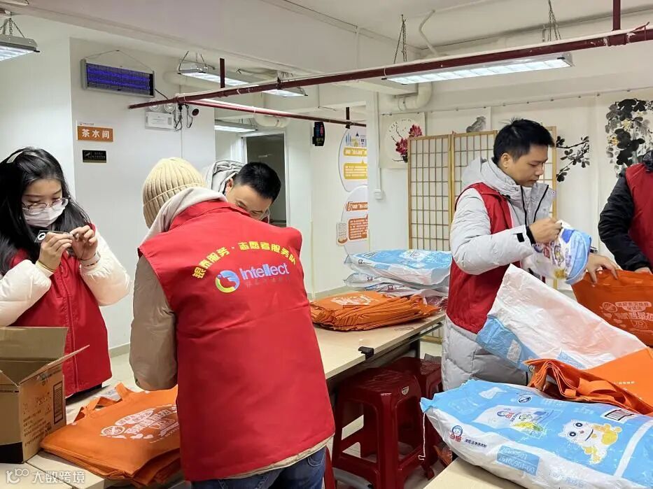 志愿者们早早来到社区活动中心,大家齐心协力、有条不紊地准备物资。保温杯、护手霜、洗衣粉,每一份暖心大礼包都承载着来自社区和企业沉甸甸的关爱。