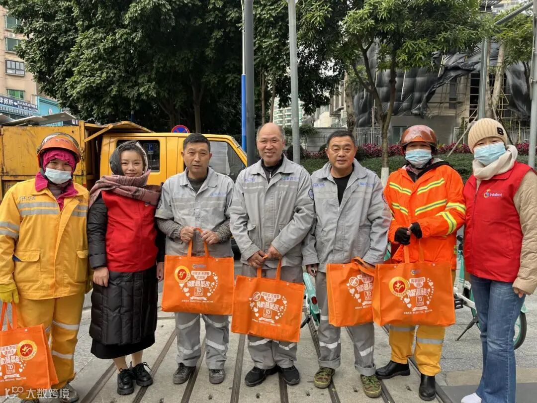 12月22日上午,时值冬至,银泰服务志愿者服务队联合同德社区,携手开展“寒冬送温暖 真情暖人心”志愿活动,一起为社区周边环卫工人送去暖心好物。