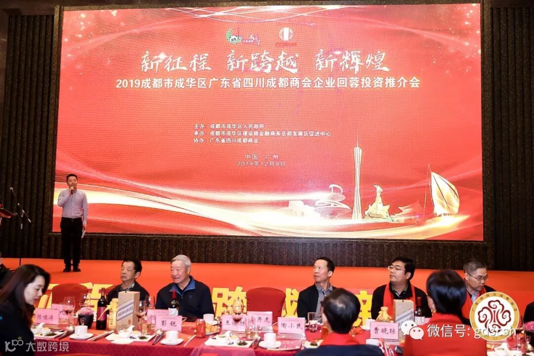 广东省社会组织管理局副局长罗小明、四川省人民政府驻广州办事处副主任王德胜、成都市工商联副主席贺鹰、成都市人民政府驻深圳办事处处长陈啸涛出席并致辞。出席活动的还有广州市工商联,天河区工商联,成都市成华区、简阳市、金堂县,阿坝州金川县,宜宾市筠连县等政府领导,兄弟商协会代表等500余人参加了本次活动。