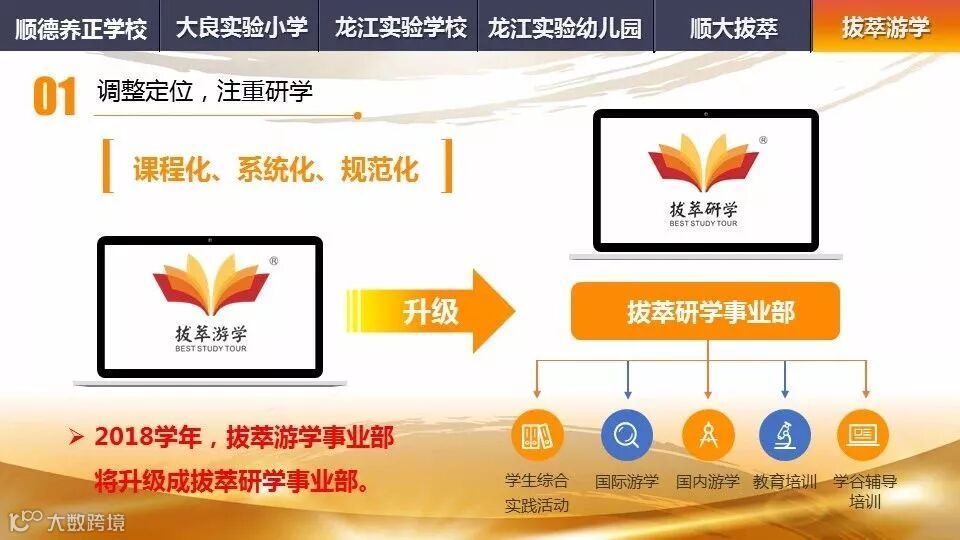 集团行政部、集团教学部、拔萃研学事业部、拔萃人力事业部、顺德养正学校、大良实验小学、龙江实验学校
