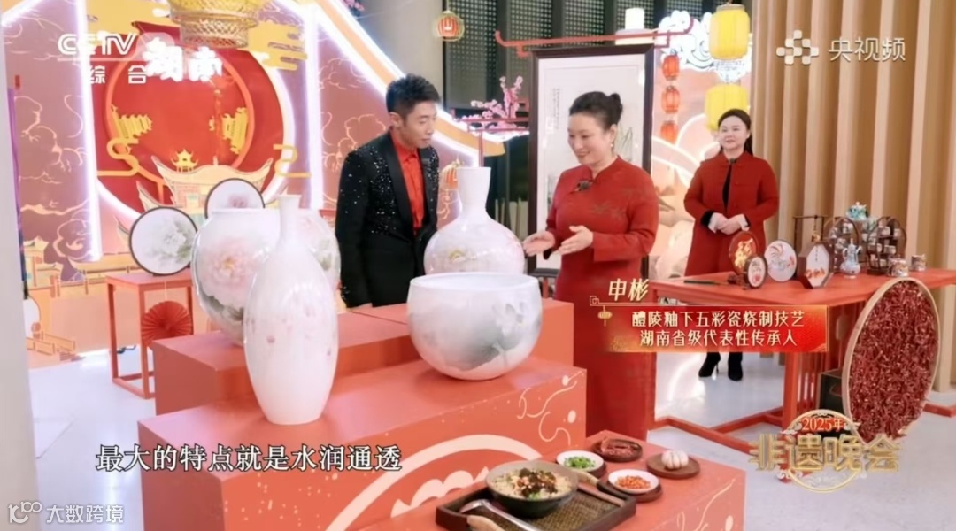 2025年,醴陵陈扬龙窑以"薄施淡染"为主题,在全国范围内掀起了一场醴陵瓷文化传播的热潮。这一年,我们先后参与了19场重大文化交流活动,足迹遍布大江南北。年初,省级非遗代表性传承人申彬携醴陵瓷登上CCTV1非遗春晚,让全国观众领略了釉下五彩瓷的独特魅力。在第五届中国国际消费品博览会、2025艺术上海国际博览会、中国国际服务贸易交易会等国际性展会上,我们的作品一次次惊艳亮相。特别值得一提的是,在第十七届中国民间文艺山花奖·优秀民间工艺美术终评作品展、2025湖南(醴陵)国际陶瓷产业博览会等专业展会上,醴陵瓷以其精湛工艺获得业界高度认可。从河北省“千年窑火 生生不息”湖湘瓷器展到宜兴站的巡回展览,从“瓷·young”当代陶瓷艺术作品展到中华陶瓷暨新疆新瓷重走新时代丝绸之路作品巡回展览,我们不仅展示了醴陵瓷的技艺之美,更让湖湘文化的深厚底蕴在全国各地生根发芽。国家级非遗代表性传承人陈利在湖南省交通运输工会女职工主题阅读活动中的精彩分享,更让非遗技艺走进寻常百姓的生活。这一年,我们以瓷会友,让醴陵瓷真正成为了连接传统与现代、艺术与生活的文化桥梁。