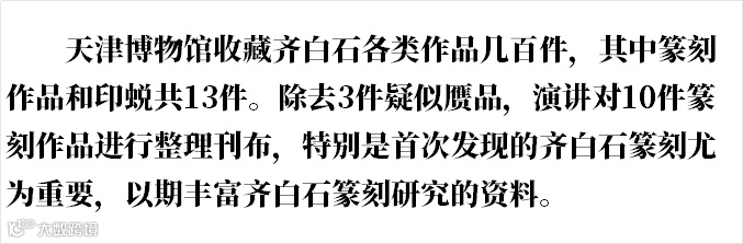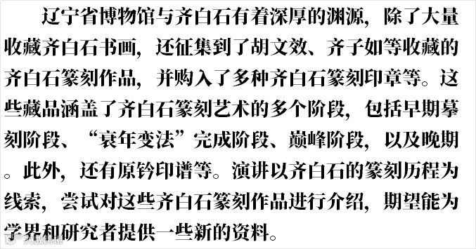 演讲以1954年辽宁省博物馆(前身为东北博物馆)为齐白石举办中华人民共和国成立以来的首次个人展览相关档案资料为主要分析对象,深入发掘辽宁省博物馆与齐白石之间的渊源,并整理出与齐家交往频繁的收藏家相关记录。1954年的齐白石展览,不仅为辽宁省博物馆和齐白石之间构建了桥梁,而且间接促成了70年后,即2024年辽宁省博物馆举行的齐白石特展。本文通过进一步研究相关藏品和1954年展览资料,探究齐白石艺术创作中的理念与情怀。