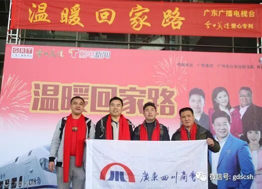 2月8日,为了让异地务工者春运回家路更快更安全,为了让经济拮据、一票难求的务工者能有票回家团聚过年,我会联合广东广播电视台《今日关注》栏目、广铁集团、广州市公安边防支队、肯德基小侯鸟基金在广州南站西广场共同为重庆、成都方向的四川务工人员送免费高铁票的爱心专列活动,为他们送行回家过年,场面温馨感人。今次“温暖回家”路爱心专列活动是广东广播电视台电视新闻中心《今日关注》栏目连续第四年为异地务工人员送免费高铁票。在本次爱心活动中,我会提前二十多天就向会员企业征集乘车民工名单、核实身份,最终协助组织了85名川籍务工人员成功踏上“温暖回家路”爱心专列,我会秘书长何扬宇亲自担任领队,全程陪同,协调服务,随行返川。