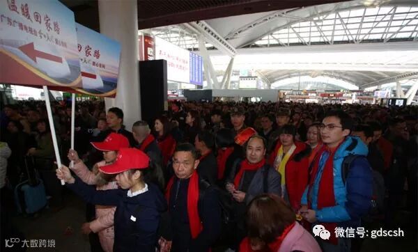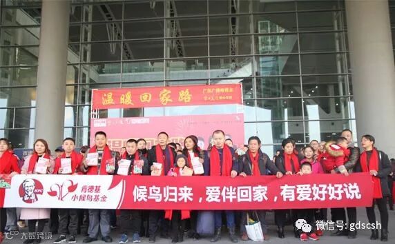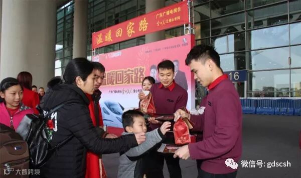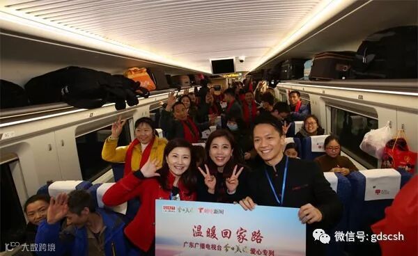 8日上午9时,在广州南站西广场,85名异地务工人员大包小包地从广东各地赶来这里集中,他们的目的地分别是成都与重庆站, 广东广播电视台电视新闻中心副主任张兴电、电视新闻中心民生部总监卢战、副总监杨小龙、《今日关注》知名主播李青山、黎绮雯、云菲到场为异地务工人员送行,逐一为乘客送上车票、戴上红围巾,寓意大家新年红红火火,同时还为每位乘客送上香喷喷的肯德基早餐,及礼物,场面温暖感人。