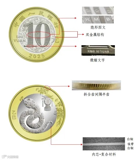 2025年贺岁双色铜合金纪念币公众防伪特征整体效果见图5。