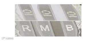 硬币外缘分布有交替排列的斜全齿与半齿。防伪特征效果见图2。
