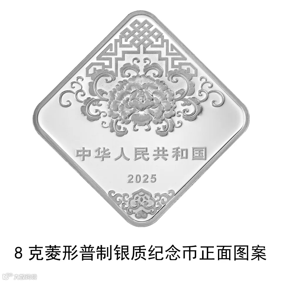 8克菱形银质纪念币为普制币,含纯银8克,边长23毫米,面额3元,成色99.9%,最大发行量1500000枚。
