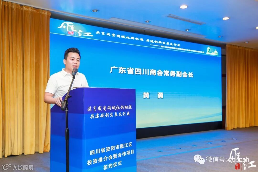 8月31日,由中共资阳市雁江区委、资阳市雁江区人民政府主办的以“共享成资同城化新机遇•共建创新发展先行区”为主题的四川省资阳市雁江区投资推介会暨项目合作签约仪式在广州凯旋华美达大酒店隆重召开,资阳市政府相关领导及商协会代表、企业家约150人出席参加本次推介会。我会常务副会长黄勇作为嘉宾应邀出席本次活动。