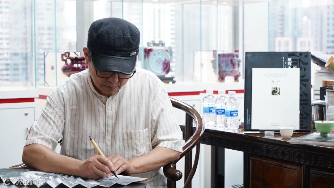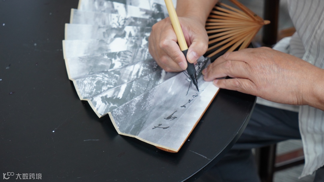 交流会期间,陈辉教授给此次参与艺术交流会且收藏其作品的藏家们带来了他的亲签限量版画。也为到场的藏家朋友们准备一份"亲笔"礼物:在墨画扇上留下墨宝,赠予藏家们。