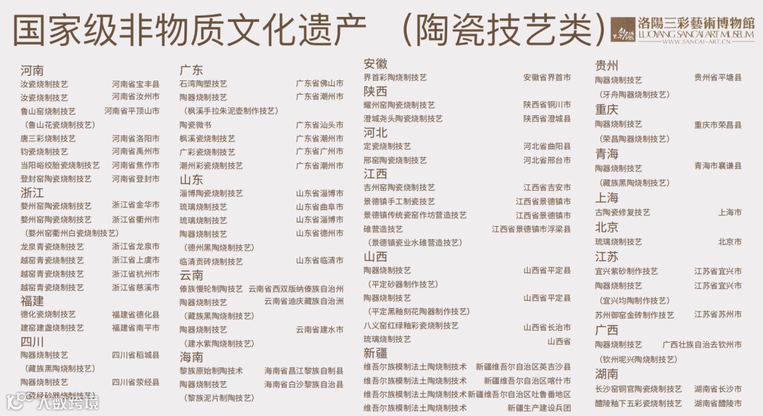 中国,国名“China”,以陶瓷享誉世界。陶瓷是中国的第五大发明,也是最重要的一个发明,是我们人类第一次把一种物质变化为另外一种物质的创造性活动,是泥土和火的艺术。我国国家级非物质文化遗产(陶瓷技艺类)不下百余项。