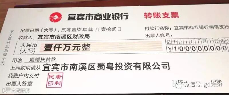 此次一千万元的捐款主要用于南溪区贫困户的扶持与脱贫项目开发。