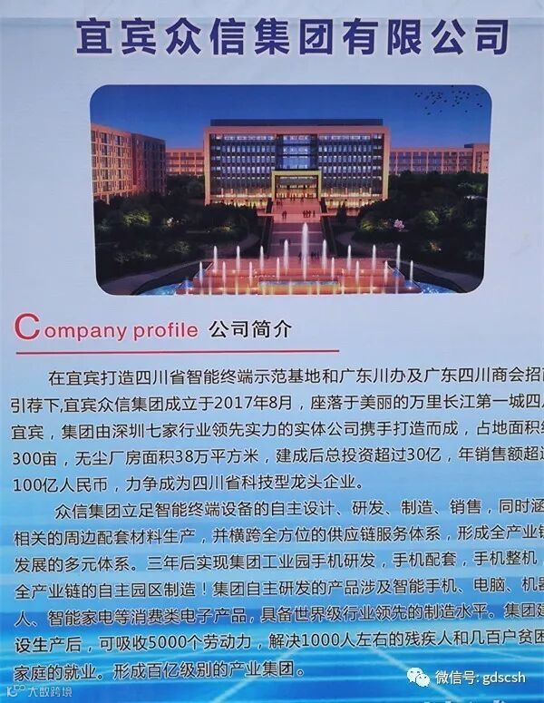据介绍,宜宾众信集团由在手机行业具有较大影响力的七家企业联合组成,我会监事长熊宗友担任众信集团董事局主席,七个股东中有四个股东企业都是我会会员单位。宜宾众信集团智能终端产业园项目总投资将超过30亿元,总占地约300亩,项目共建设无尘厂房、宿舍、办公及工程研发大楼约38万平方米。项目建成后预计第一年将实现销售总额80亿元以上,产生税收8000万以上;第二年总额90亿元以上,产生税收9000万以上;第三年销售总额100亿元以上,产生税收1亿元以上,创造就业岗位5000人以上。