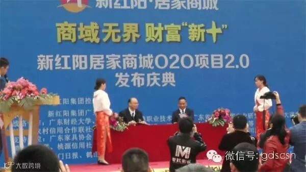 新红阳集团控股董事长朱长远致欢迎辞;鹤山市委常委、常务副市长陈常岷讲话祝贺。在举行了一系列校企人才合作、金融资本合作、技术战略合作、供应链合作、远期战略合作的签约仪式后,我会常务副会长、家具分会会长朱玉山为居家商城O2O项目2.0版的项目团队授旗。随后,朱玉山会长在接受记者采访环节,详细介绍了居家商城O2O项目2.0版的运作模式与规划。最后,全体与会代表参观了居家商城O2O项目2.0版展示厅,体验了以整体配套、家居装修、“一条龙”、“交钥匙工程”为主要内容的居家商城O2O项目2.0版。