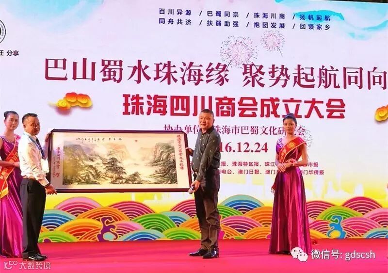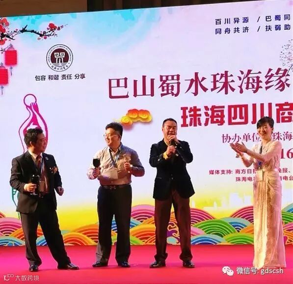 12月24日,由珠海四川商会主办、珠海市巴蜀文化研究会协办的珠海四川商会成立大会在珠海国际会展中心隆重举行。来自珠海市的川籍企业家、珠海四川商会会员、广东省有关领导及友好商协会代表共计800人出席了盛会。我会会长王开庆、理事长朱曲波、常务副会长杨永国、杜成平、副会长周敏及各分会代表等应邀出席了庆典。