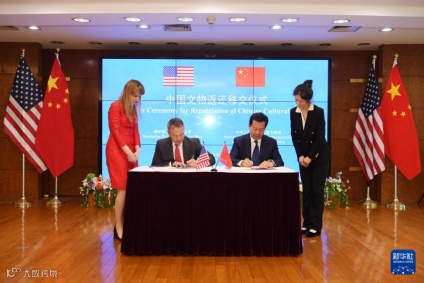 2009年1月14日中美两国首次签署防止中国文物非法入境美国的政府间谅解备忘录以来,中美合作成功实现15批次504件/套流失美国的文物艺术品回归中国。本次返还是自2024年1月中美谅解备忘录有效期顺延以来,中美政府职能部门成功开展的首次文物返还合作。
