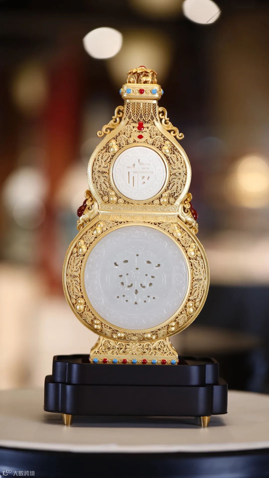 为生动展示中华历史之厚重、弘扬中华文化之自信,站在文化传承和文明未来的顶峰上,推出代表盛世中国的大国重器,中国文物交流中心授权推出“金玉盛世 大国传承”文物艺术品系列,其中系列首件作品《福禄泰平》特邀中国工艺美术大师程淑美(花丝镶嵌)、中国工艺美术大师李春珂(牙雕)、中国玉石雕刻大师孟庆东(玉雕)三位大师联袂担任设计创作,以八件国家一级文物为原型,推出代表我们这个时代的大国经典——《福禄泰瓶》。
