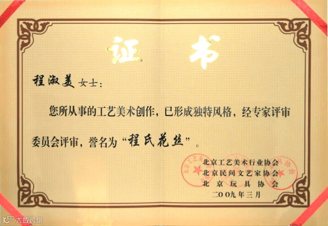 2009年3月,鉴于程淑美花丝镶嵌艺术形成了鲜明的个性风格,北京工艺美术行业协会、北京民间文艺家协会联合组成的专家委员会命名了“程氏花丝”,这是北京工艺美术界首批以姓氏命名的艺术流派,用一个人的姓氏誉名一个艺术产业门类可谓莫大的荣誉。