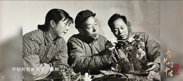 1967年,程淑美从工艺美校毕业,进入北京工艺美术厂工作。深感自己立体造型能力有所欠缺的她为了进一步提高花丝镶嵌技术,主动要求进玉雕车间。那时玉雕行当十分辛苦,玉雕工人抱着沉重而冰冷的玉石上水凳进行琢磨,双手浸在金刚砂泥水中,一浸几个小时,所以当时玉雕车间里男性多,女性少。然而程淑美硬是咬牙坚持下来,在玉雕上亦学有所成,她创作的“麒麟献宝”还在全国玉器作品展获得奖项。