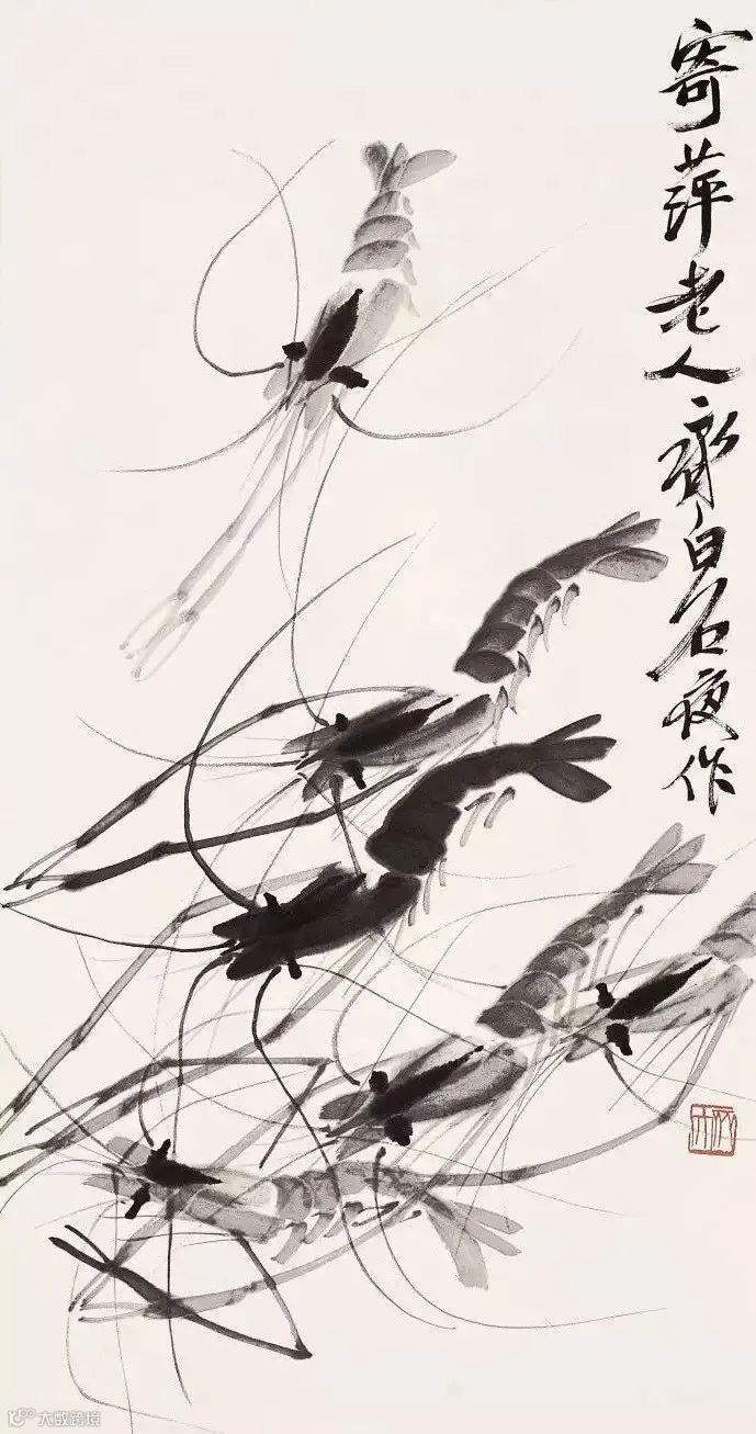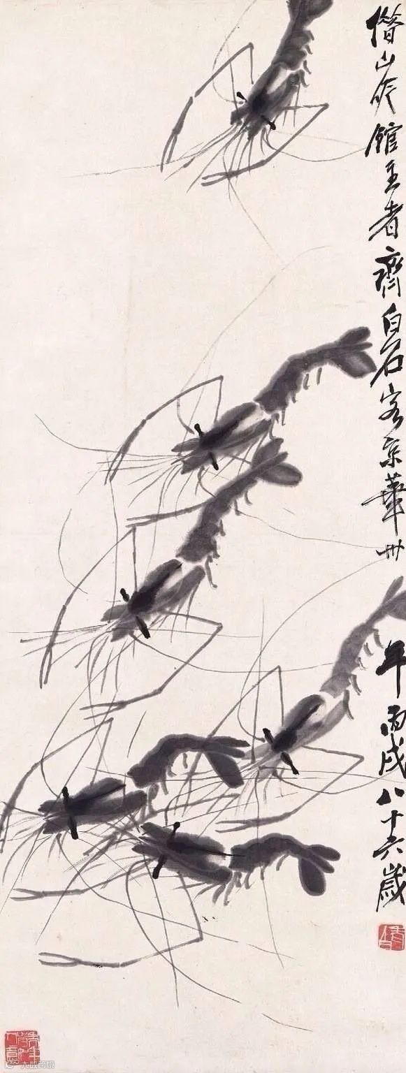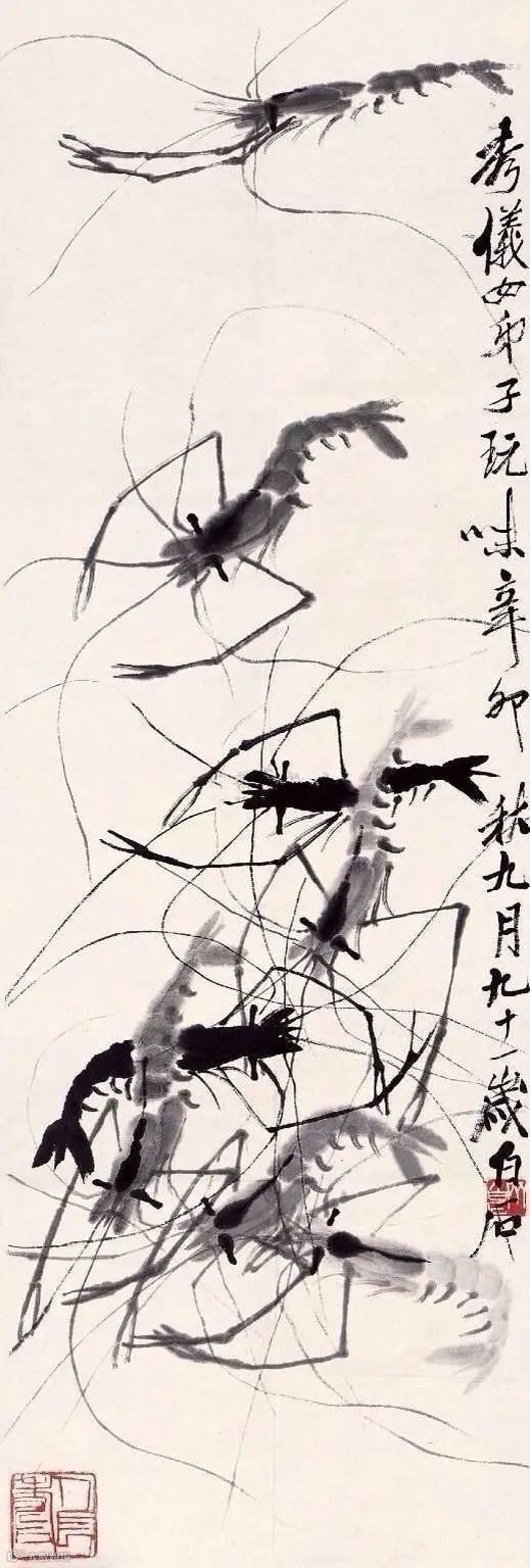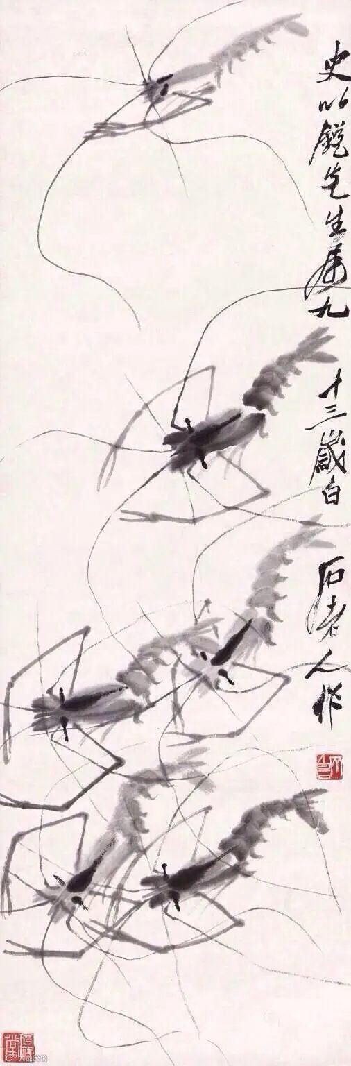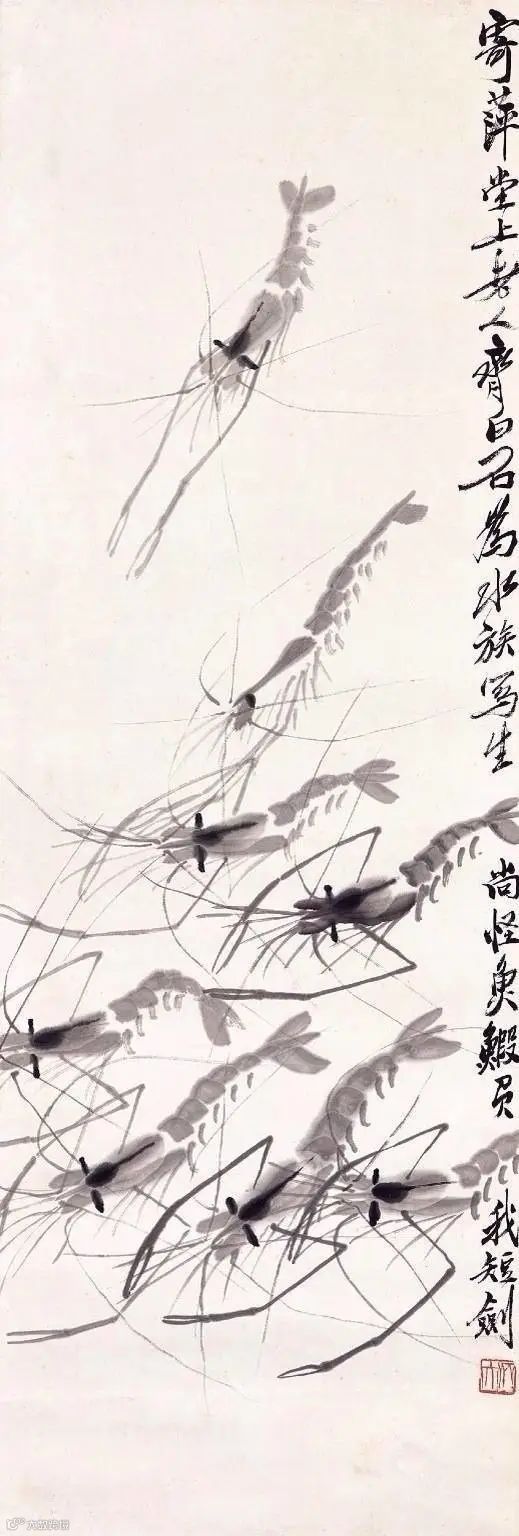 齐白石写虾来自生活,却超越生活,大胆概括简化,更得传神妙笔。