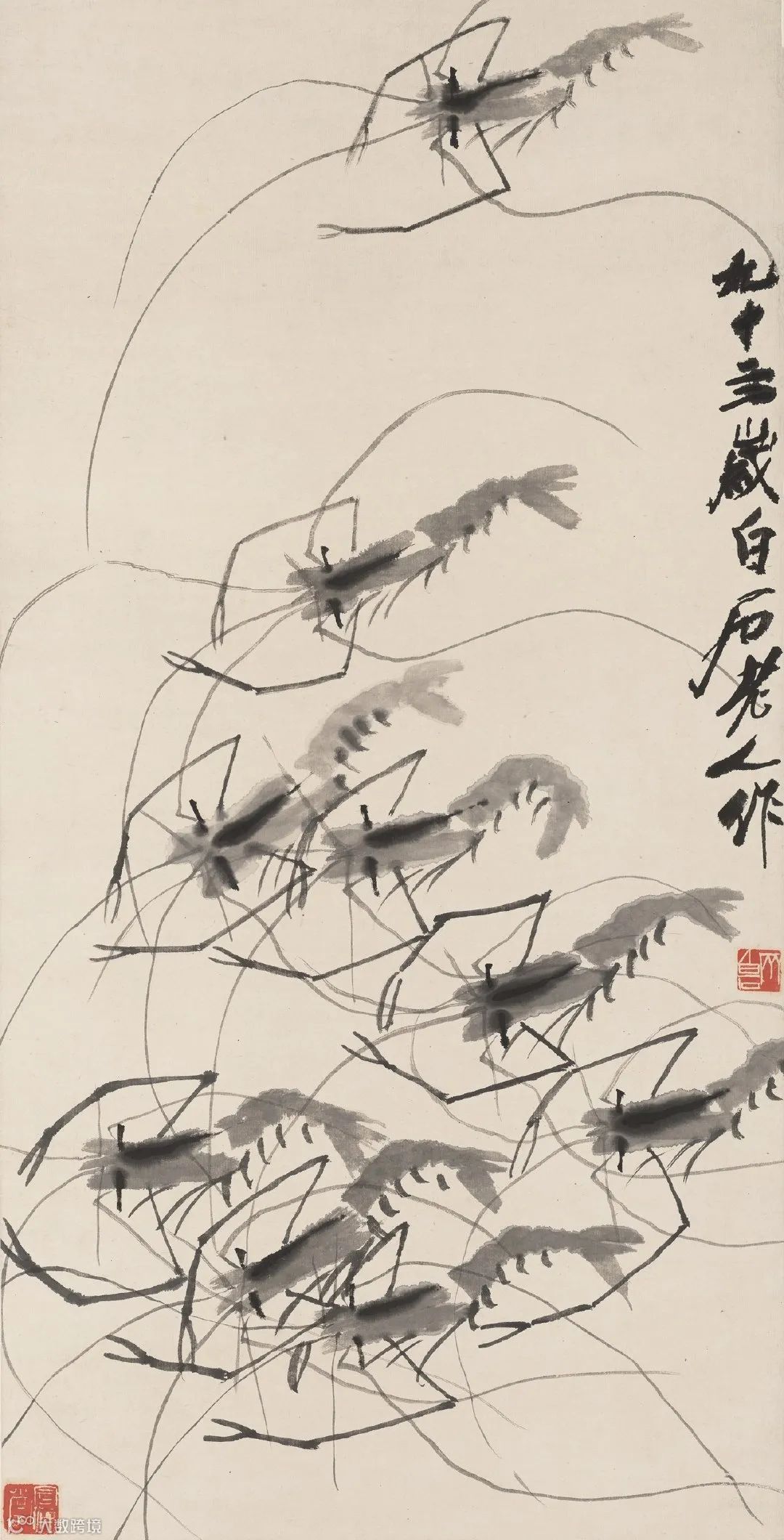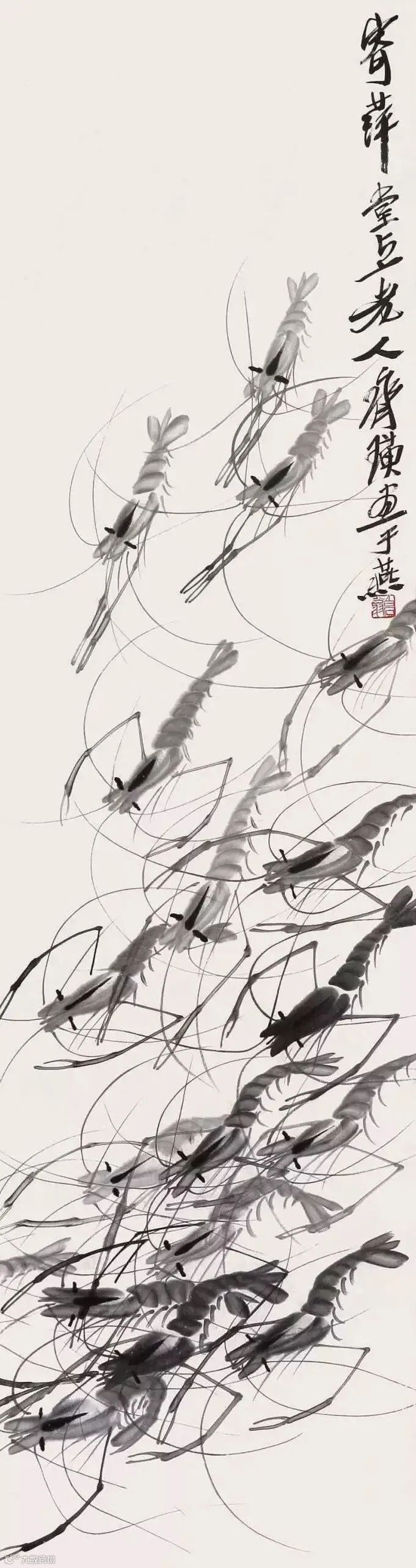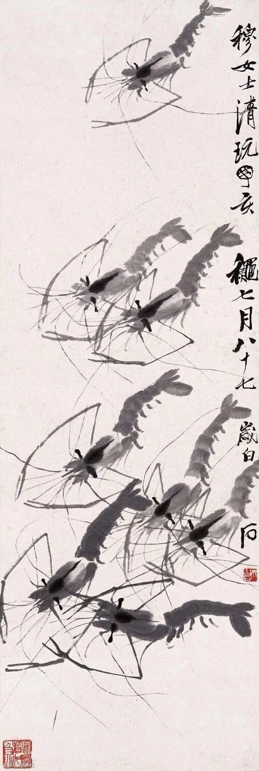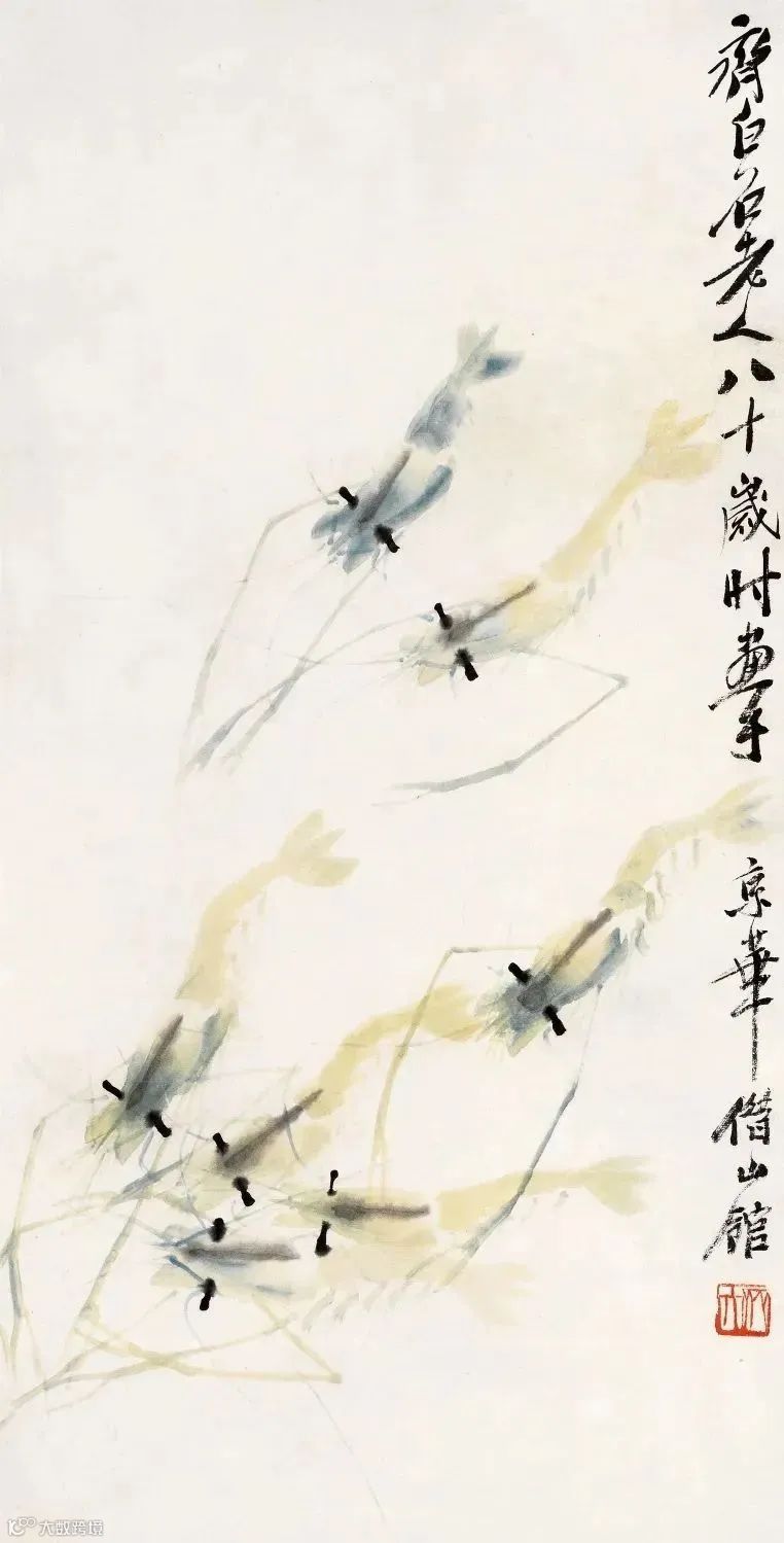 齐白石写虾来自生活,却超越生活,大胆概括简化,更得传神妙笔。