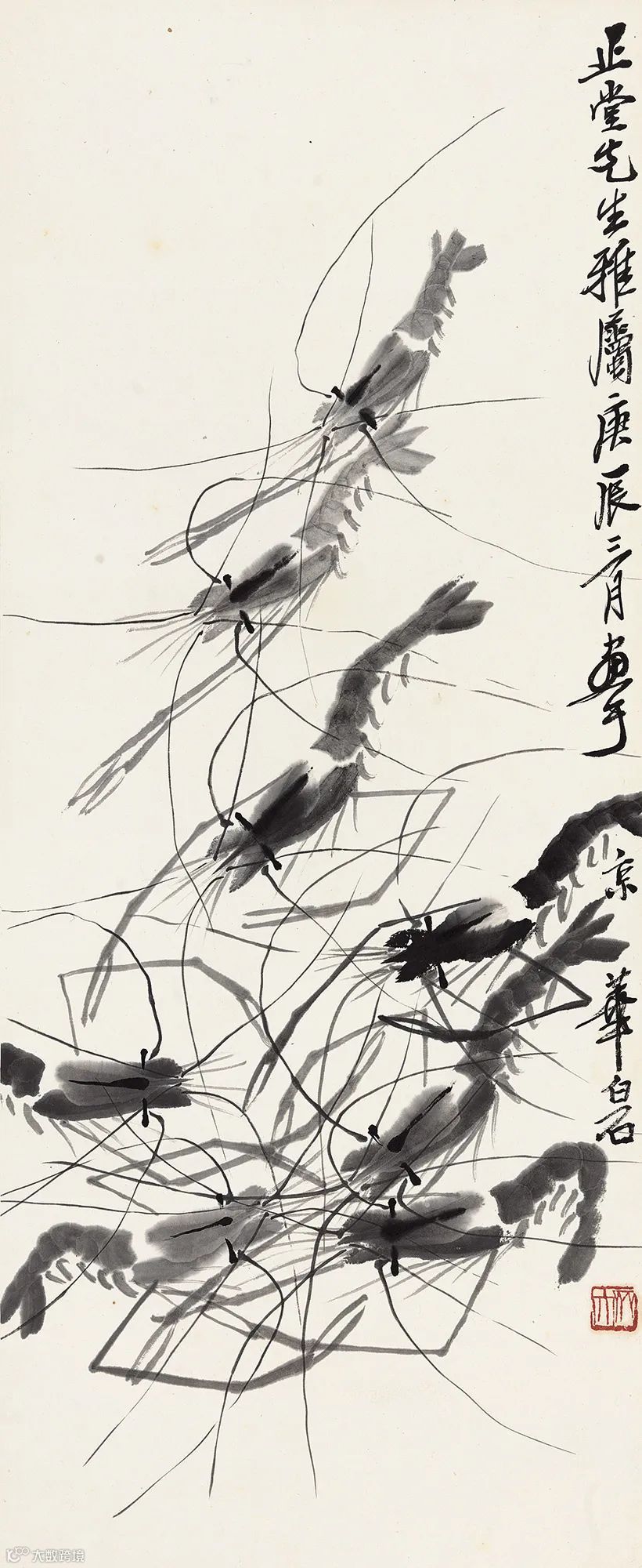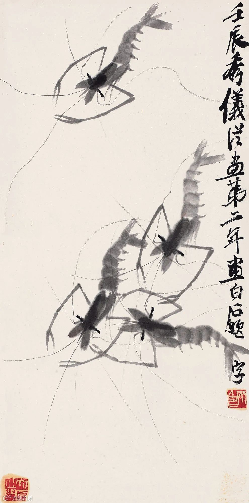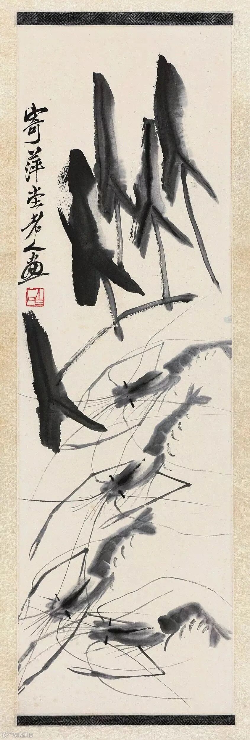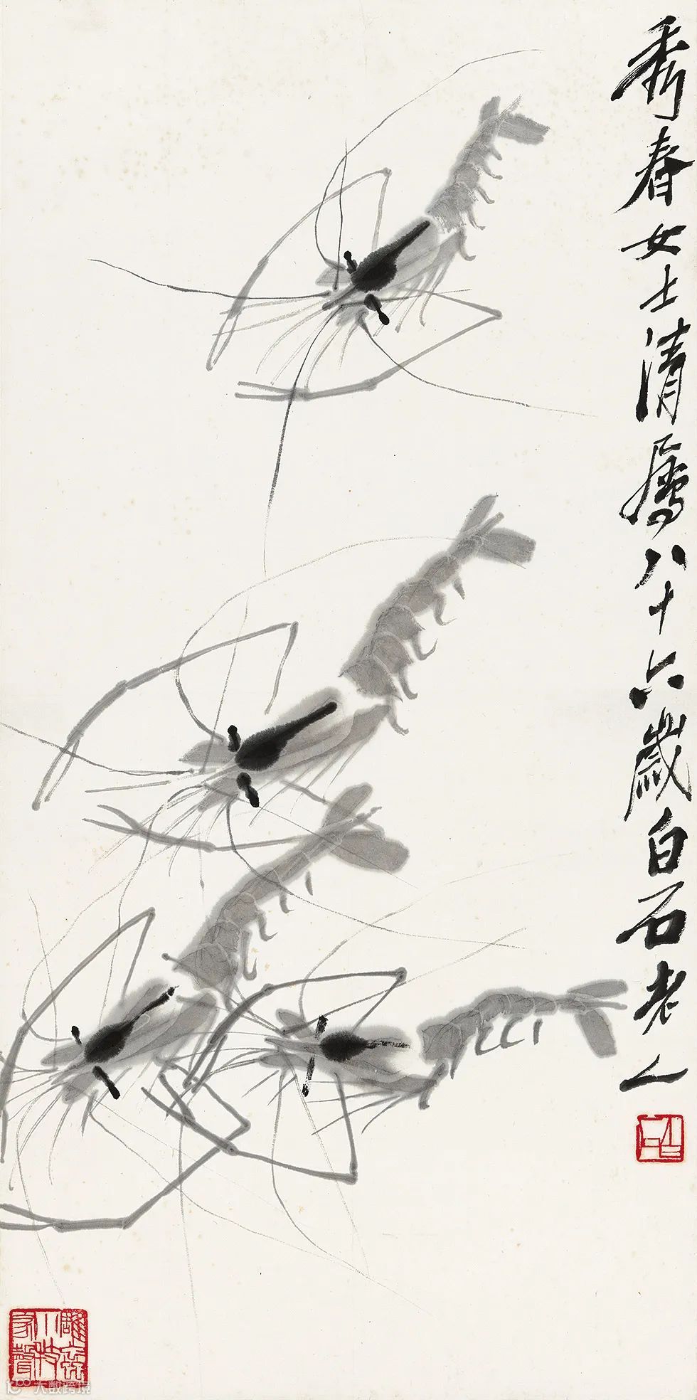 齐白石写虾来自生活,却超越生活,大胆概括简化,更得传神妙笔。