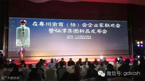 12月28日,由广东省泸州商会举办的“在粤川渝商(协)会企业家联欢会”暨仙潭集团新品发布会在东莞市万达文化酒店隆重举行,来自广东省的川渝商(协)会企业代表近800人出席了大会,我会常务副会长黄勇、谢东、唐任高,副会长周龙芬等领导应邀请出席了联欢会。