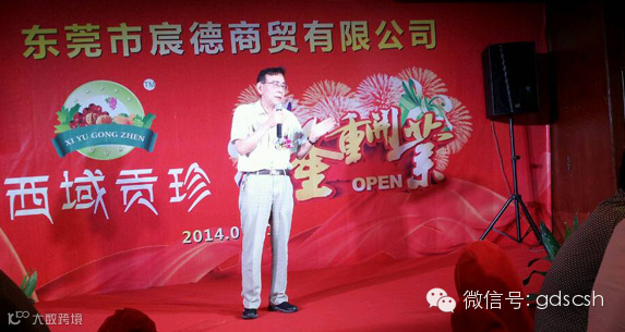 7月11日,我会东莞分会常务副会长冷棕柱创办的东莞市宸德商贸有限公司在东莞市隆重开业。该公司主要经营绿色、健康的西域原生态果品,打造“西域贡珍”品牌社区连锁专卖店。