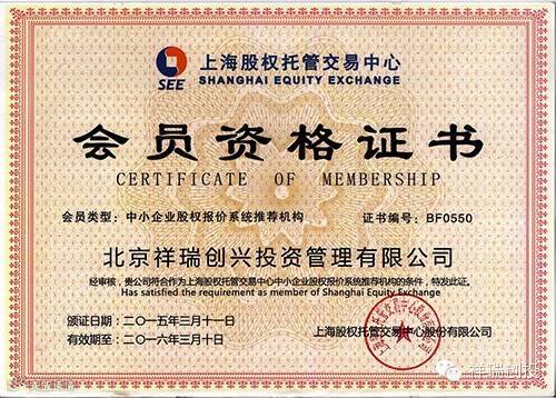 北京祥瑞创兴投资管理有限公司是一家专业从事中小企业金融服务的投资管理公司,公司是上海股权托管交易中心认定的拥有推荐挂牌和经纪业务的全牌照会员机构。我们提供包括投融资顾问、资产重组、收购兼并、场外市场挂牌、海内外上市等在内的投资银行服务。