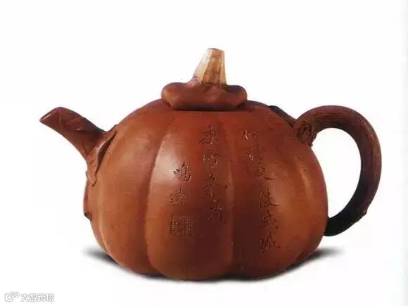 南瓜壶是宜兴紫砂壶花货类经典之作,乃紫砂艺人从大自然汲取灵感所创制的壶型,带有一股来自乡野的清新活泼气息,经艺人加工,又显得玲珑精巧,温雅可爱。壶以瓜体为身,瓜蒂为钮,藤为流把,壶身贴塑茎、须、叶,纹络逼真细致,瓜棱匀称饱满,盖与身上下贯通,弧线优美,和谐自然。