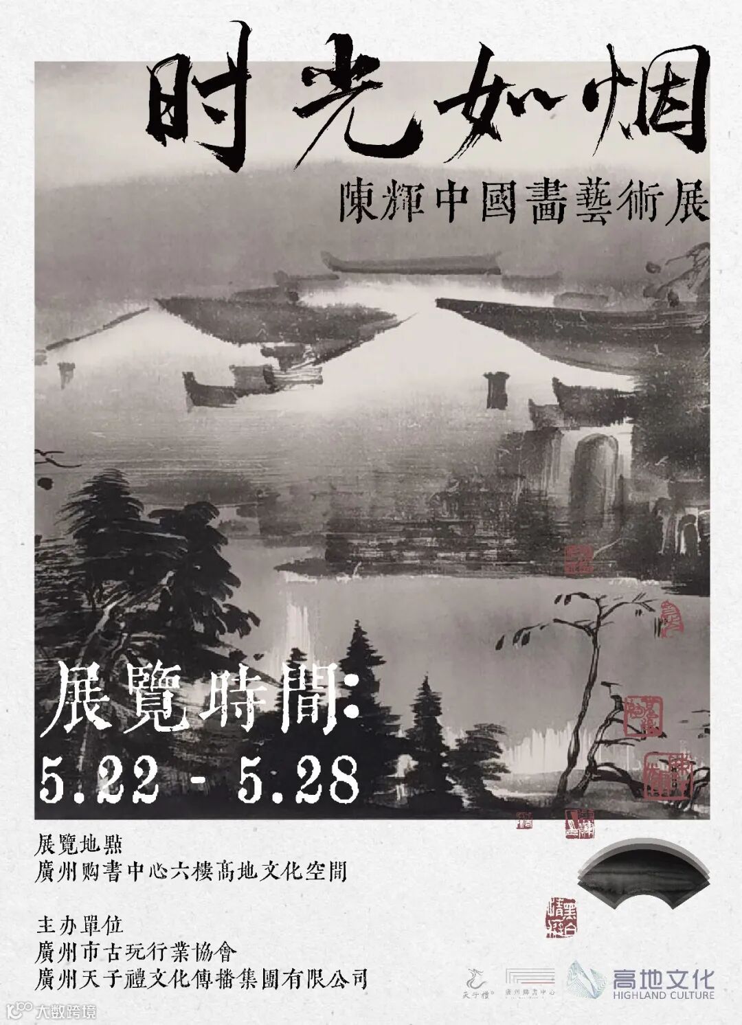 《时光如烟》陈辉中国画艺术展由广州市古玩行业协会、广州天子礼文化传播集团有限公司联合主办。本次展会为期七天,展期为2023年5月22日至5月28日。