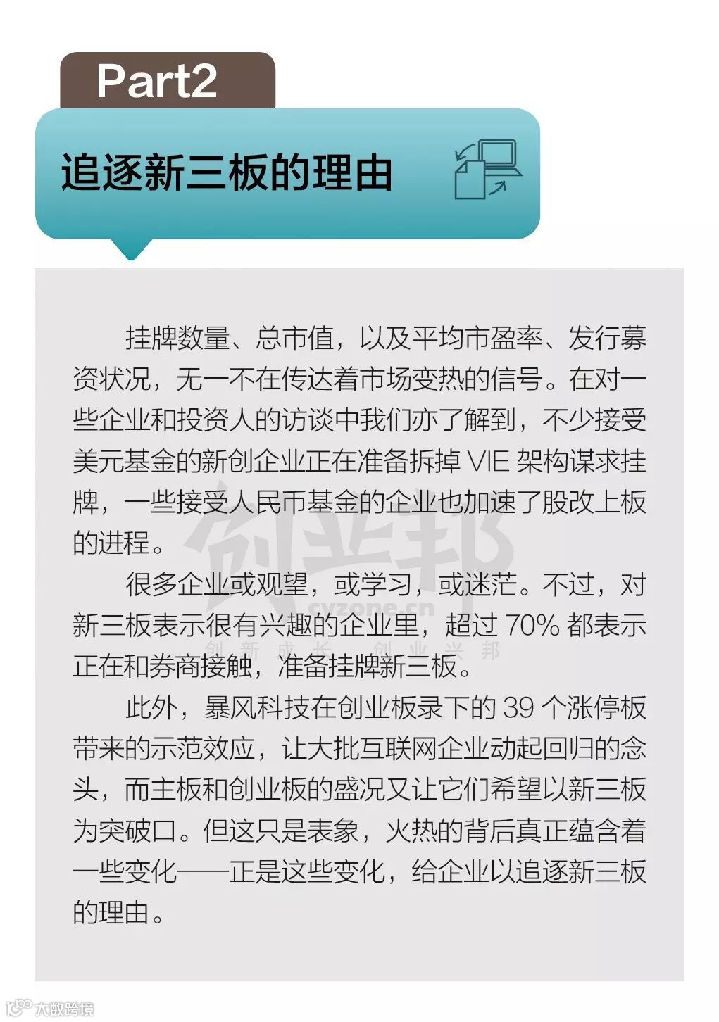 这份报告,是创业邦研究中心查阅大量资料并采用问卷和访谈相结合的方式,调研了100多位奋战在一线的互联网创业者、20多位来自不同投资机构、总监级别以上的投资人以及熟悉新三板政策、业务、法律规范的律师和券商的结果。
