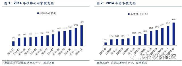 2014年新增挂牌公司1216家,占全部挂牌公司总数77%;总股本658.35亿股,总市值4591.42亿元。