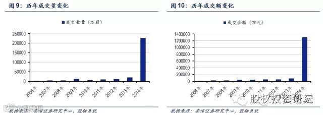2014年成交量同比放大10倍,成交额同比放大15倍。