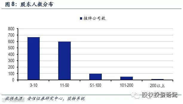 2014年三板企业中95%以上挂牌公司股东人数在100人以下。