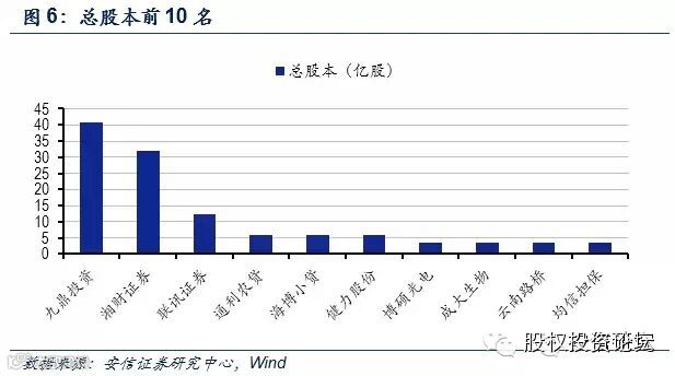 7. 总股本排名:九鼎投资、湘财证券和联讯证券居前