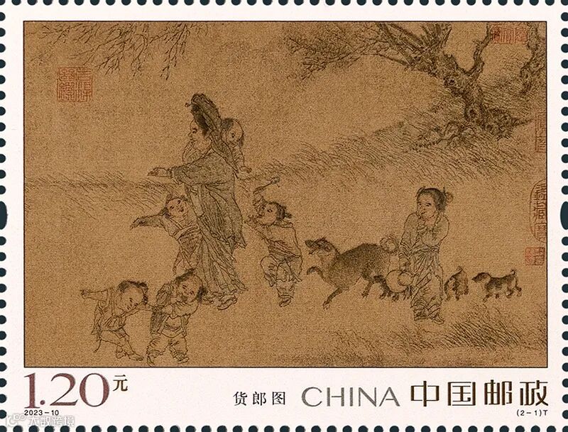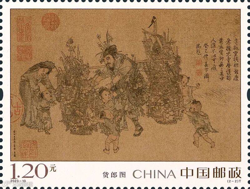 中国邮政定于2023年6月18日发行《货郎图》特种邮票1套2枚,小型张1枚。详情如下:
