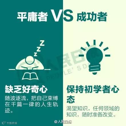 你害怕失败,拒绝尝试,做事3分钟热情,凭什么从事喜欢的职业?你宁可窝在沙发上刷手机刷到凌晨,也不会埋头读一本书,凭什么过上理想的生活?2015年已过半,仔细想一想,现在的你和半年前的你是否别无二致?别让你的人生就此止于平庸。自查↓↓改变!