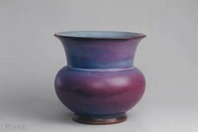 ▲(上)明初 钧窑玫瑰紫釉仰钟式花盆
