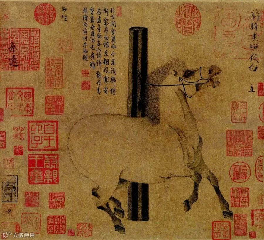 《照夜白图》是唐代著名画家韩干创作的一幅中国水墨画,现藏于美国大都会博物馆。这幅国宝级画作是用水墨线描完成的,描绘的是唐玄宗李隆基喜爱的坐骑“照夜白”的形象,其判断的依据来自于另一位帝王李煜,在画幅的右上角有“韩干画照夜白”六字。