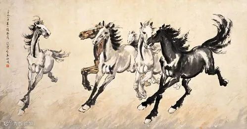 《奔马图》这幅中国著名水墨画作品,是徐悲鸿于1941年所作,被列入国家一级文物。画中的马雄骏、矫健、轻疾,颇有“瘦骨铜声”之美感,奔马强壮有力、生机勃勃,此画不仅表现了马的精神和特征,更赋予了画家自己的个性和理想——为振兴民族艺术而奋斗!