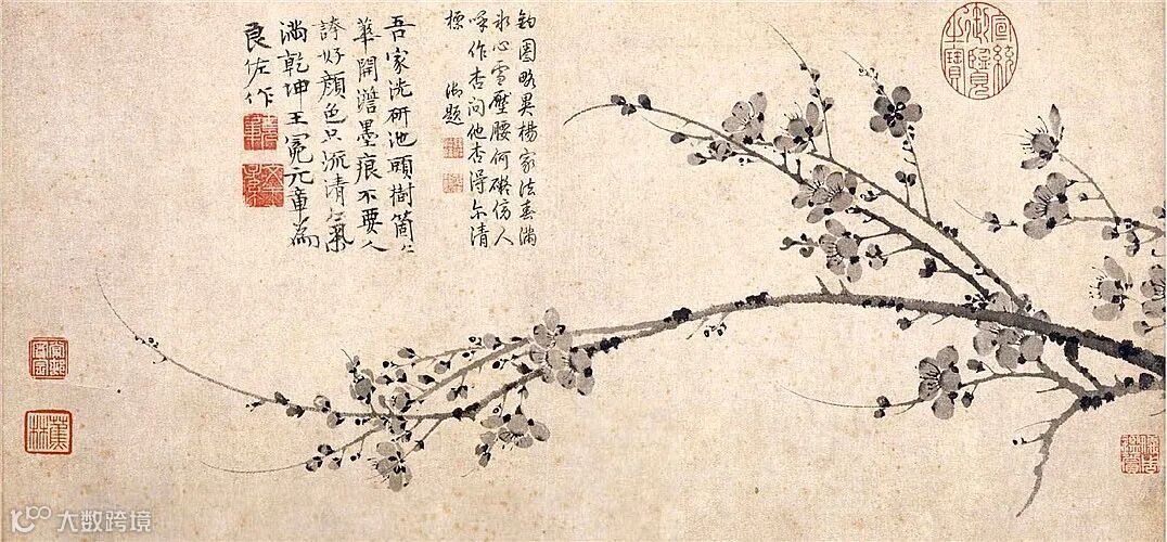 这幅画作与王冕以往的画梅图都有所不同,不是以繁密取胜,而是以疏秀简洁见长。王冕用单纯的水墨和清淡野逸的笔致,生动地传达出了梅花的清肌傲骨,寄托了文人雅士孤高傲岸的情怀。此图是王冕晚年画梅艺术臻于化境的杰作,令后人叹赏不已,亦对明清画坛产生了十分深远的影响。