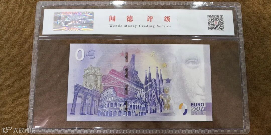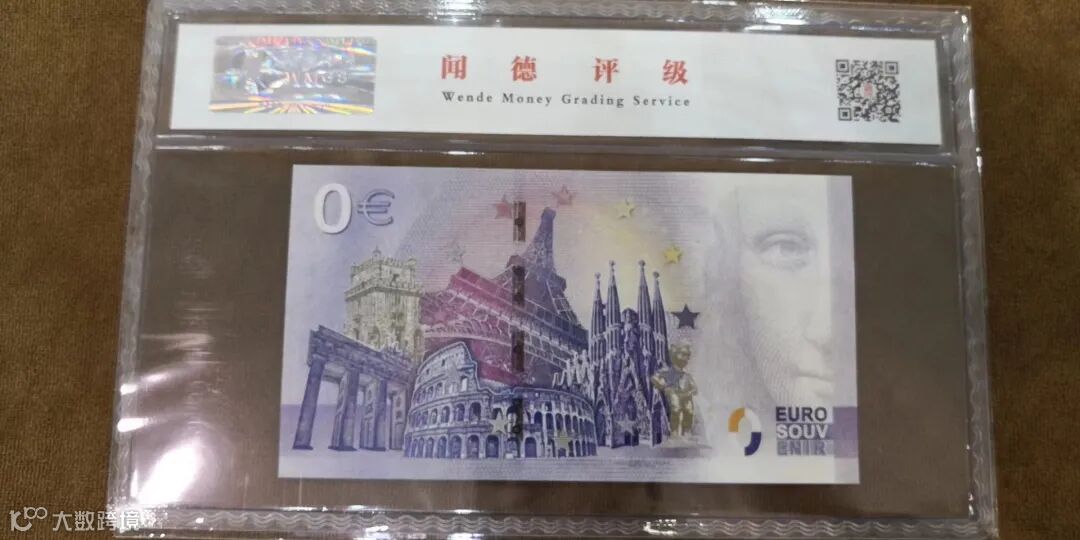 背面主景为意大利古罗马竞技场、埃菲尔铁塔、神圣家族大教堂、勃兰登堡门等世界著名代表建筑,左边为面额数字“0”欧元,右边为蒙娜丽莎的半脸像。