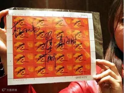 2004年11月30日,随“神舟五号”一起遨游太空的3个整版邮票的冠名权在成都锦江宾馆进行拍卖,经过激烈竞价,香港一家保险信息公司最终以170万元的高价成交。在拍卖现场,工作人员将放置在保险柜内的这3个整版邮票取出,向竞买者做了展示。票面上有中国航天第一人杨利伟及飞天预选航天员聂海胜、翟志刚3人的亲笔签名,3个整版邮票分别是天安门整版一版(4×5枚/版),如意整版一版(4×5枚/版),同心结整版一版(个性化邮票4×5枚/版),加佣金创造了220万元拍卖的天价,折合每枚近4.6万元。
