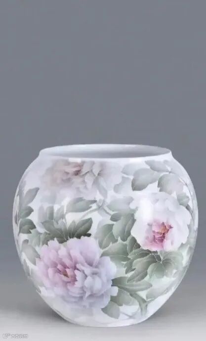 《洛阳春晓》采用“薄施淡染”工艺绘制,入泥三分,出水三分。复合色的叠加创新,更使牡丹变化丰富又气韵独特。作品绘制丰盈、施彩精绝、纹饰连贯,令人赏心悦目。